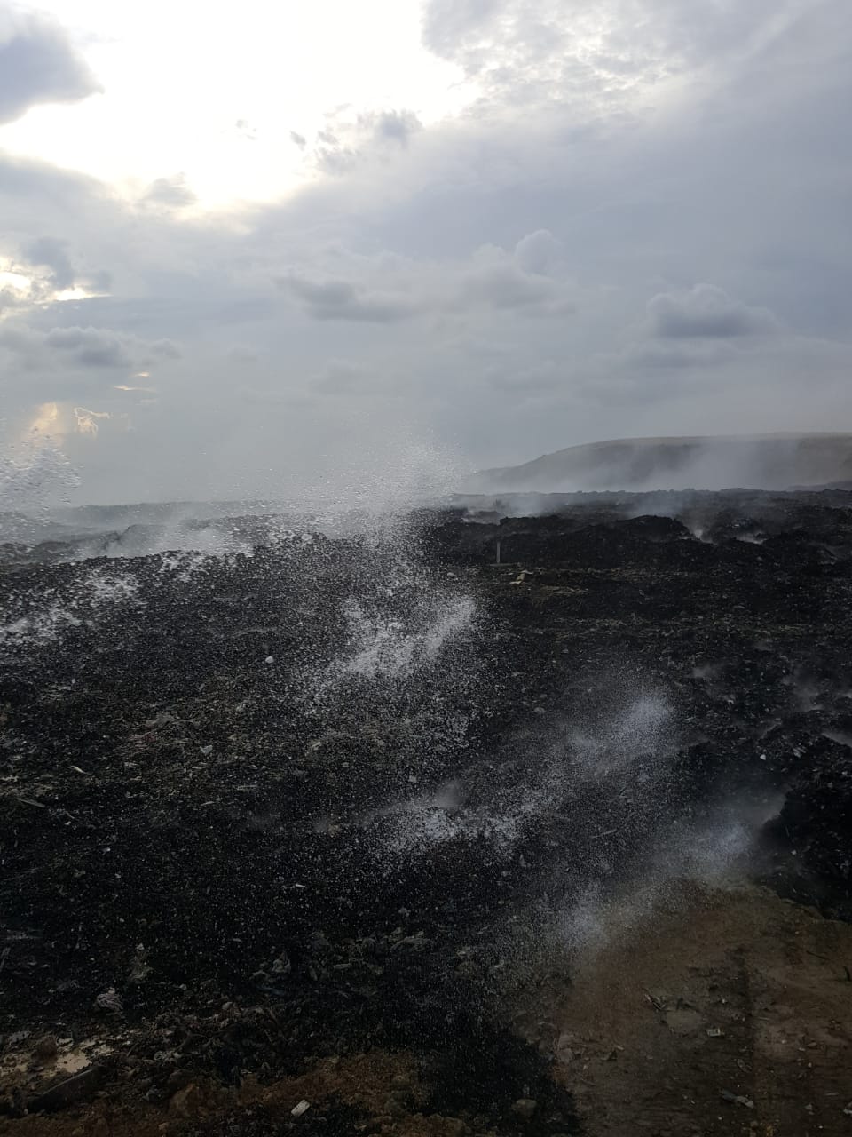 Ramón Pepín y Carlos Guzmán, ministro de Obras Públicas y alcalde de Santo Domingo Norte, respectivamente, dijeron que el área que se está trabajando es la última etapa, para dar por controlada la humareda que provocó el incendio del botadero de Duquesa.