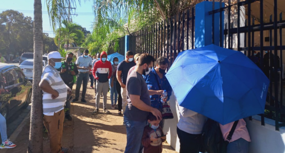 Al igual que días anteriores, cientos de personas acudieron este lunes al centro de toma de muestras PCR que funciona en la sede del Ministerio de Salud Pública, donde la fila daba la vuelta completa al edificio gubernamental.