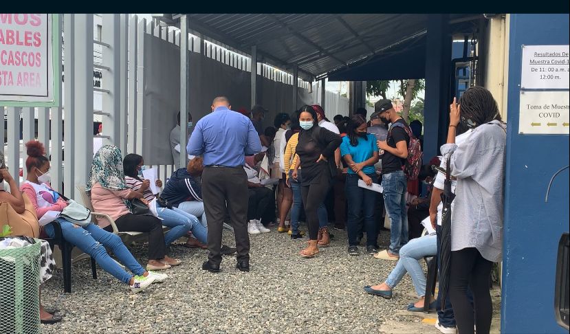 Santo Domingo. Abarrotado de personas en busca de realizarse una prueba para detectar el coronavirus amaneció el centro de toma de muestras ubicado en el Hospital Luis Eduardo Aybar.