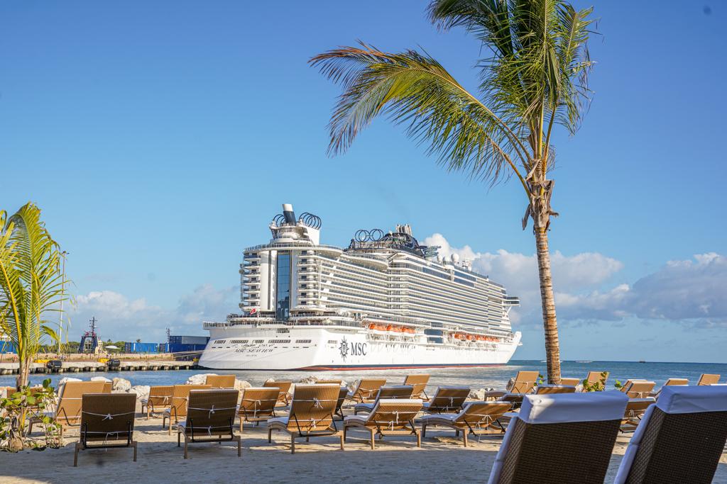 La embarcación MSC Sea View que atracó en Taíno Bay procedente de Barbados arribó al país a las 7:30 de la mañana de este viernes con 980 pasajeros y 1,335 tripulantes.