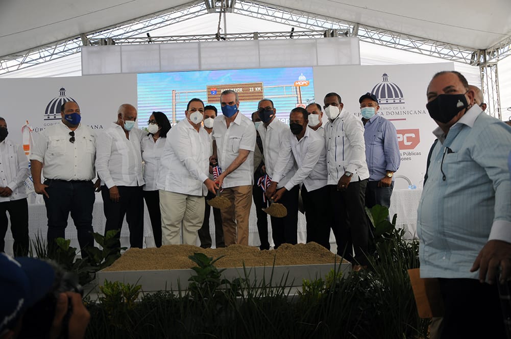 Hato Mayor-. El presidente Luis Abinader, acompañado del ministro de Obras Públicas, Deligne Ascención, dejó iniciados este sábado los trabajos de construcción de la carretera Hato Mayor-El Puerto-Bayaguana, por un monto de más de RD $ 2,106 millones de pesos, la cual será realiza por le Ministerio de Obras Públicas, MOPC.
