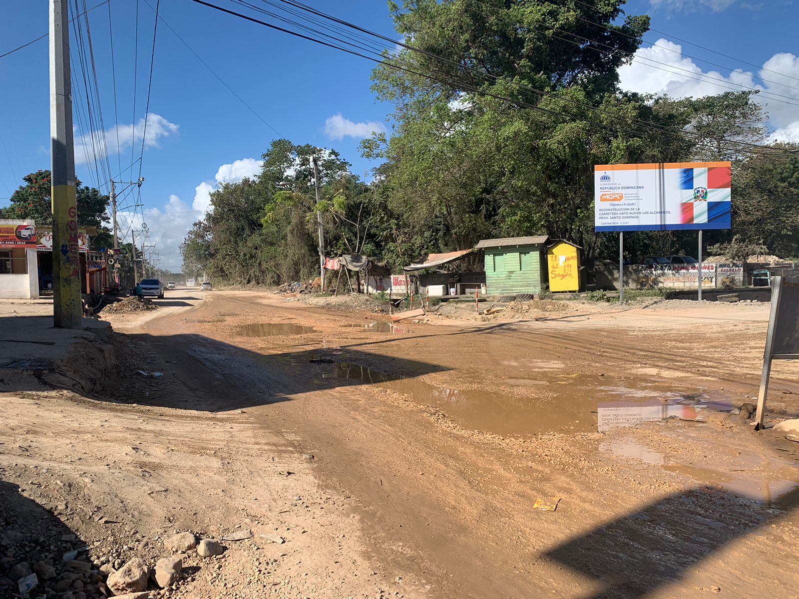 Moradores de Manoguayabo se quejan de la lentitud con la que el Ministerio de Obras Públicas realiza los trabajos de arreglo de la vía principal de la zona.