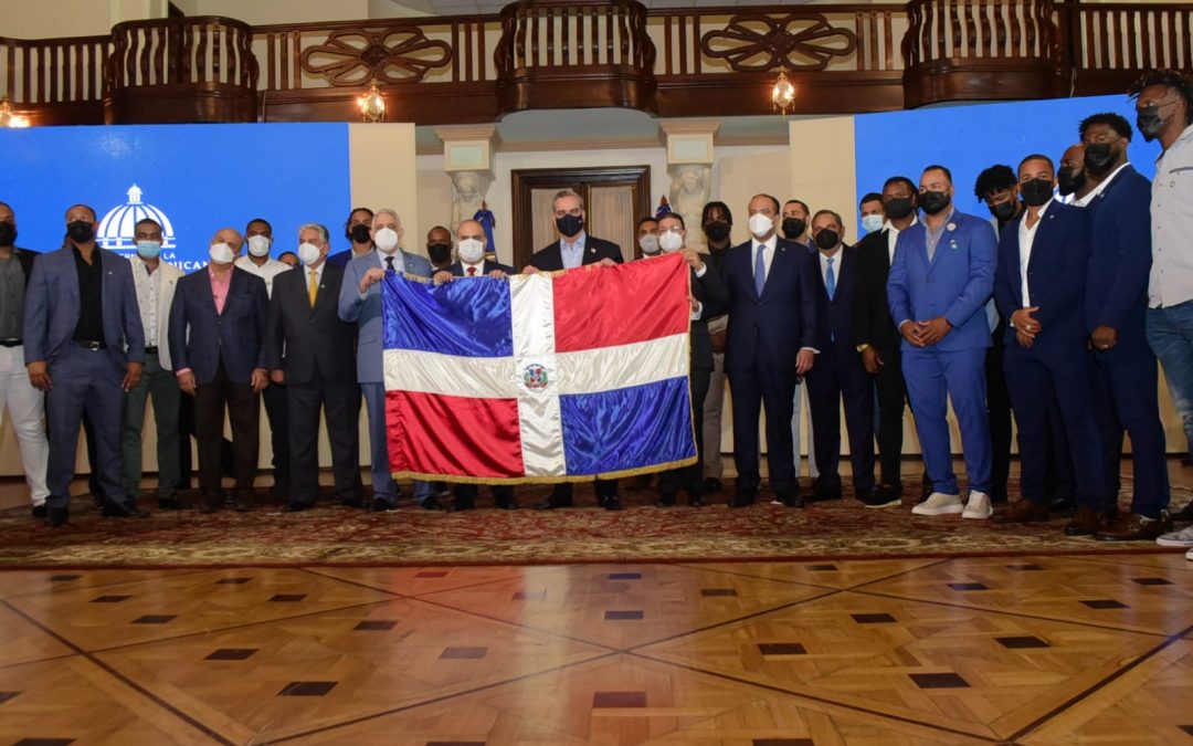 SANTO DOMINGO.-El Presidente de la República Dominicana, Luis Abinader, recibió este jueves al medio día al equipo de los Gigantes del Cibao, campeones del Torneo de Béisbol Invernal Dominicano, a quienes les entregó la Bandera Nacional, en un acto celebrado en el salón Las Cariátides del Palacio Nacional.