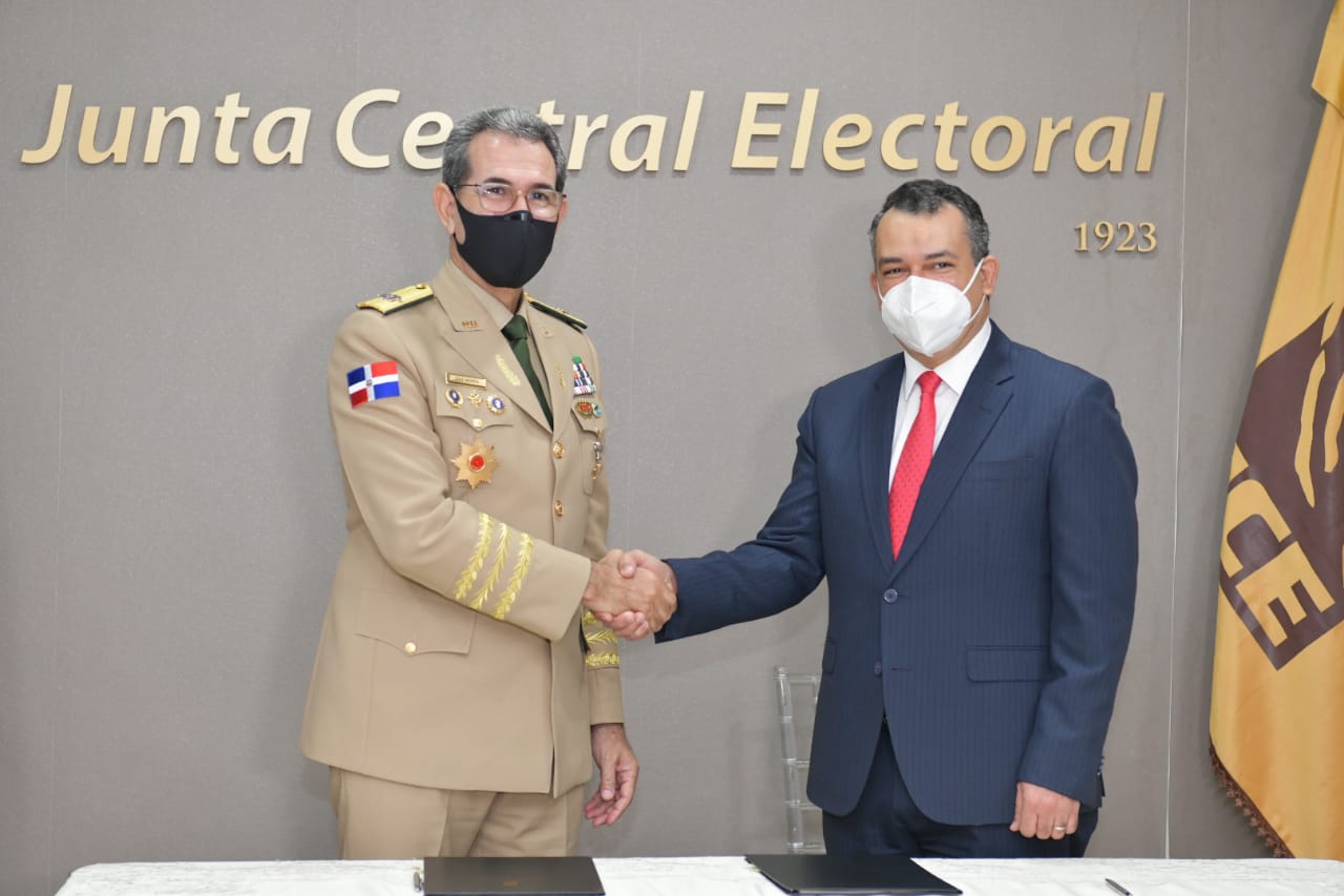 Este convenio, firmado por el presidente de la JCE, Román Andrés Jáquez Liranzo y por el ministro de Defensa, teniente general Carlos Luciano Díaz Morfa, facilitará también crear mecanismos interinstitucionales para la consecución de dicho propósito. El mismo tendrá una duración de 2 años a partir de su firma.