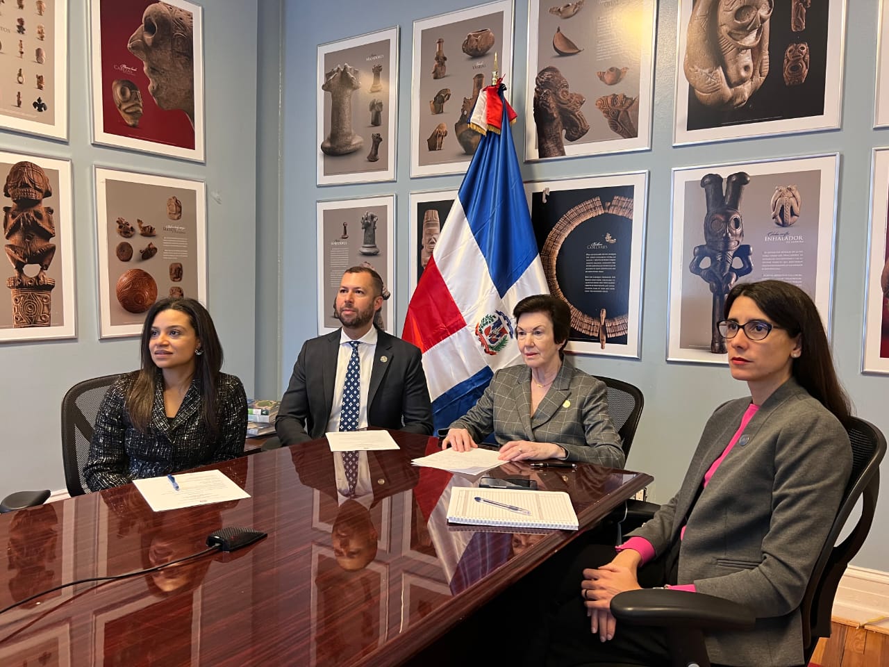 Estuvieron también presentes en el encuentro el viceministro para Asuntos Económicos y Cooperación del Ministerio de Relaciones Exteriores, Hugo Rivera Fernández, y el equipo comercial de la embajada dominicana en Washington, D.C.