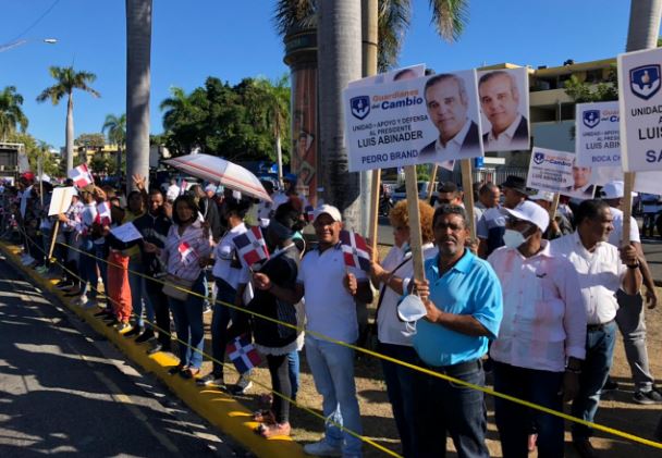 República Dominicana.- Manifestantes expresan este domingo su apoyo a la repostulación del presidente Luis Abinader, frente al Congreso Nacional .