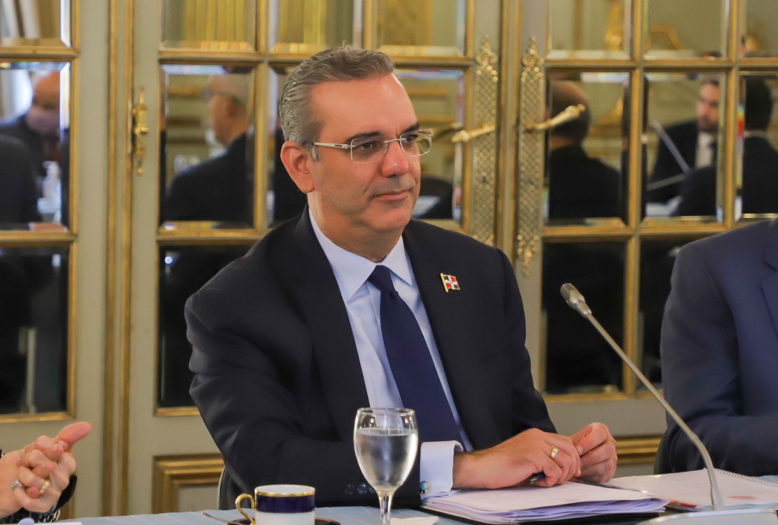 En el segundo día de su visita en este país, el gobernante dominicano participó en el encuentro acompañado de la primera dama Raquel Arbaje; los ministros de Relaciones Exteriores, Roberto Álvarez y de Industria, Comercio y Mipymes, Víctor Bisonó.