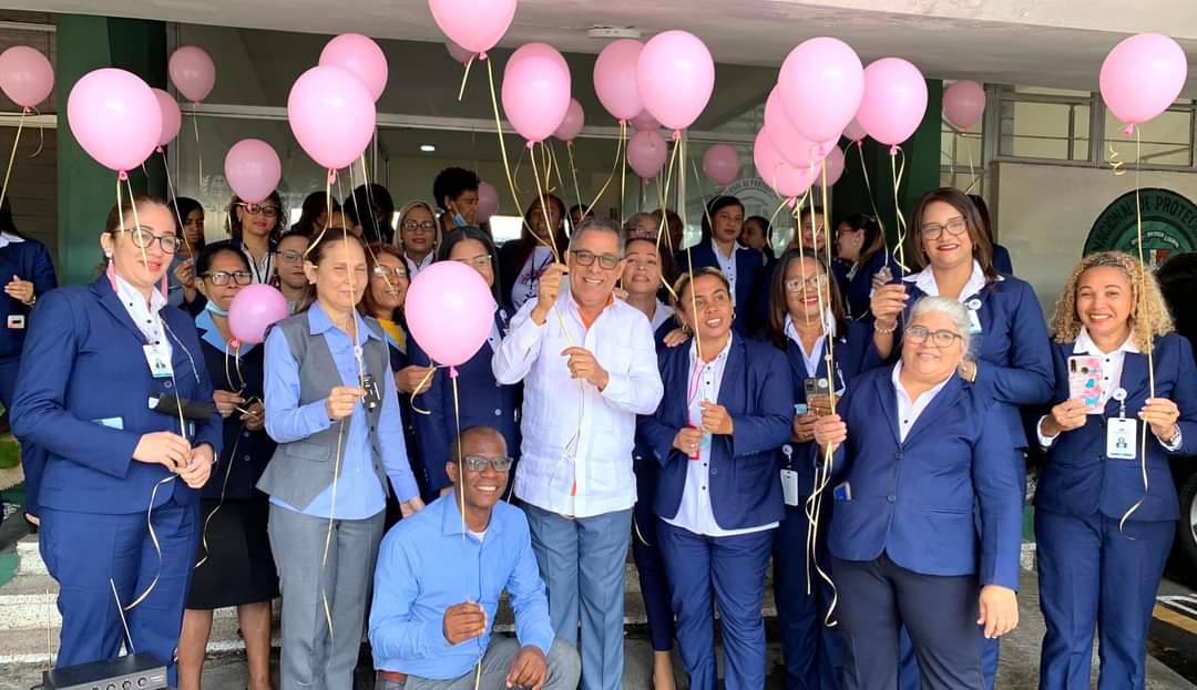 El encuentro, que incluyó el lanzamiento de globos rosados hacia el aire, formó parte de una agenda de actividades que desarrolló la DGDC durante una semana y abarcó varias de las direcciones provinciales de la institución, donde también se rindió tributo a sus empleadas.