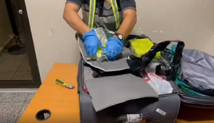 “Los paquetes y la lámina de la sustancia, con un peso preliminar de 2.56 kilogramos fueron ocupados camuflados en el doble fondo de la mochila”, señala el comunicado de prensa.