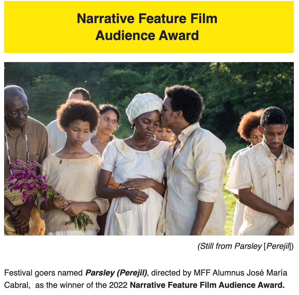 República Dominicana.-Las producciones dominicanas Carajita (Silvina Schnicer y Ulises Porra Guardiola) y Perejil (José María Cabral) salieron triunfantes del 39 Festival de Cine de Miami (MIFF) al obtener, respectivamente, el Premio HBO de Largometraje Iberoamericano y el Premio del Público.