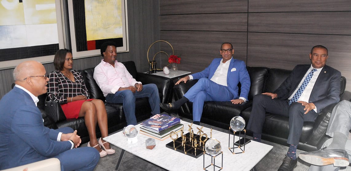 SANTO DOMINGO, RD.- El ministro de Obras Públicas y Comunicaciones, Deligne Ascención, recibió este martes en su despacho al ex lanzador de Grandes Ligas, Pedro Martínez, miembro del Salón de la Fama de Cooperstown.