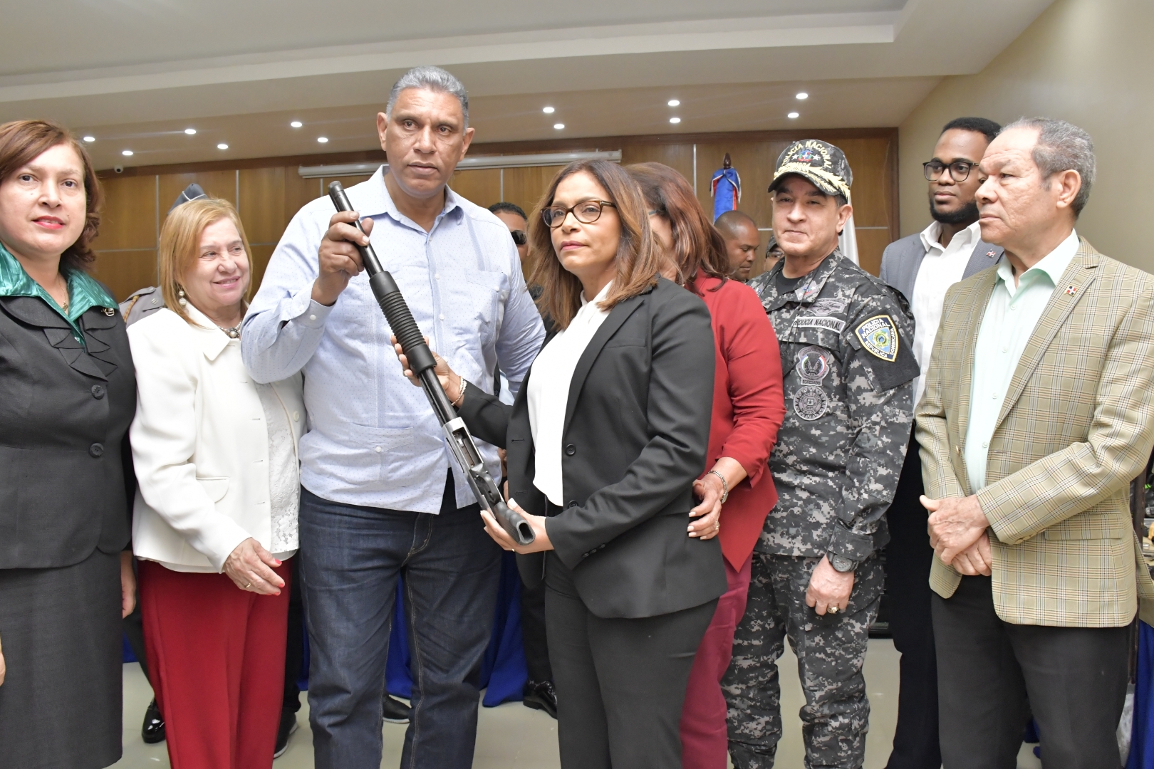 Además del ministro, en el acto de entrega estuvieron el director de la Policía Nacional, mayor general Eduardo Alberto Then; los viceministros Aníbal Amparo, de Armas, y Ángela Jáquez, de Seguridad Preventiva en los Gobiernos Provinciales, la gobernadora de La Vega, Luisa Jiménez, el intendente general de Armas, coronel Eric Ramírez, y el director de Armas, Sterling Pérez Maldonado.