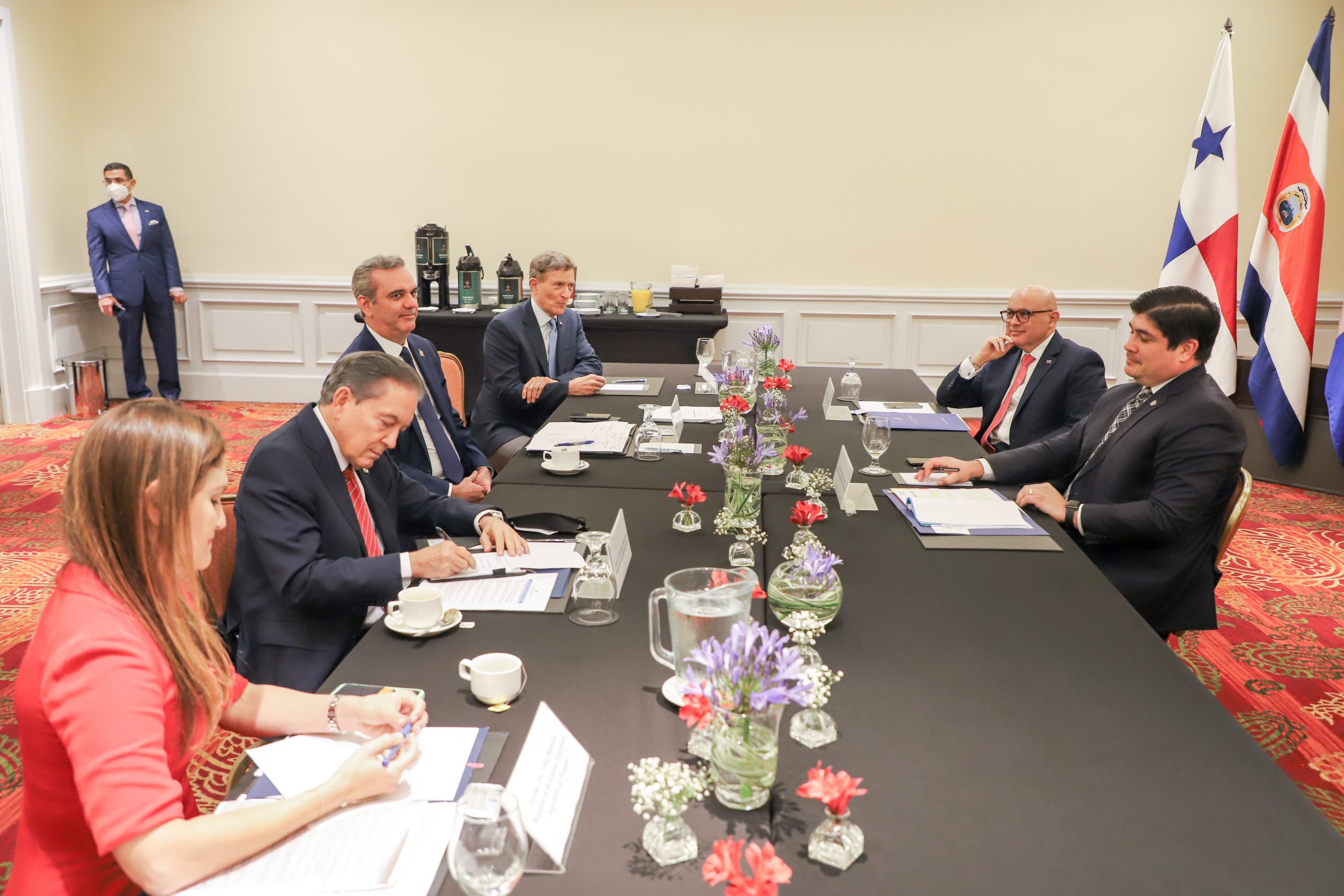 SAN JOSE, COSTA RICA.-Los presidentes de República Dominicana, Luis Abinader; Costa Rica, Carlos Alvarado y Panamá, Laurentino Cortizo, se reunieron este lunes en San José, donde acordaron trabajar con Estados Unidos en el fortalecimiento de la integración económica, la promoción de mayores flujos de comercio e inversión, reducción de vulnerabilidades en las cadenas de suministro y el aprovechamiento de la proximidad geográfica de sus mercados.
