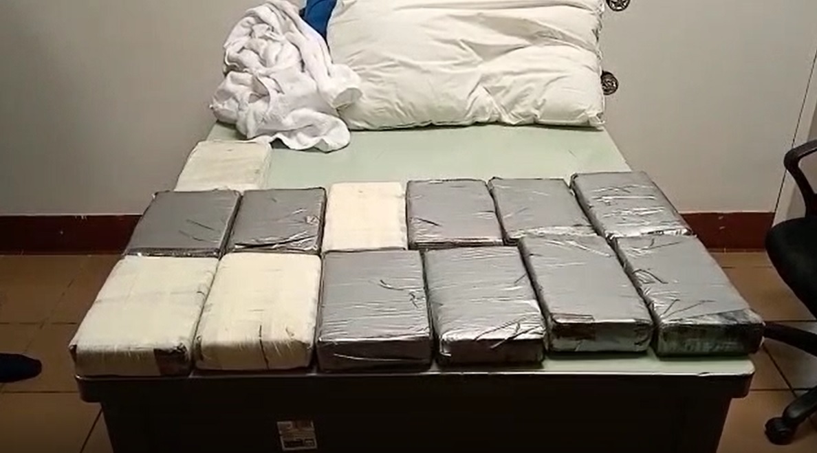 Al realizar una inspección más rigurosa se encontraron en el interior de una maleta, un bulto negro con varios paquetes de la sustancia, envueltos en sábanas y almohadas, con un peso preliminar de 15 kilogramos.