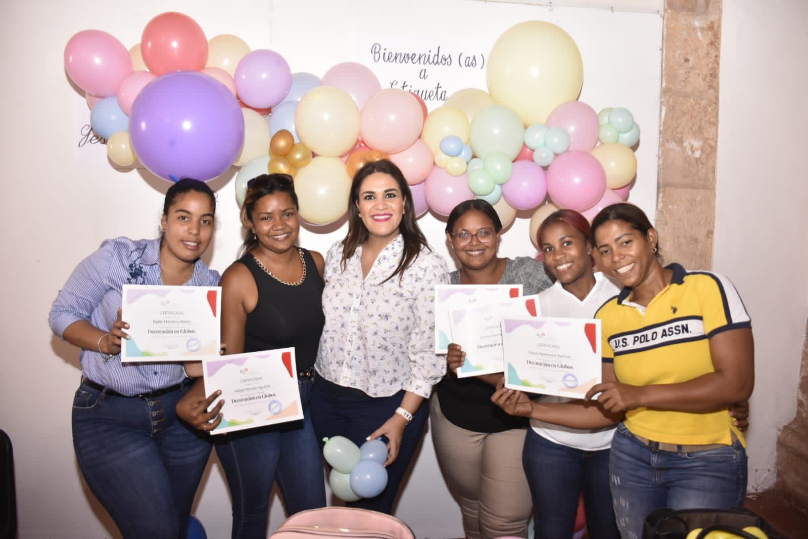 El taller de globos fue impartido por Pamela Díaz, facilitadora, voluntaria de la Fundación Trazos Solidarios, quien al finalizar entregó junto a Michelle Ortiz un certificado de participación a cada una de las mujeres emprendedoras.