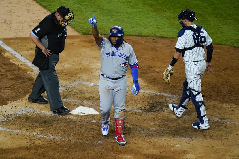 NUEVA YORK.-El dominicano Vladimir Guerrero Jr., se convirtió el miércoles  en el primer pelotero que conecta tres cuadrangulares en un mismo juego en la presente temporada, cuando se fue tres veces para la calle  en el partido de que los Azulejos de Toronto le ganaron a los Yanquis 6 carreras por 4.