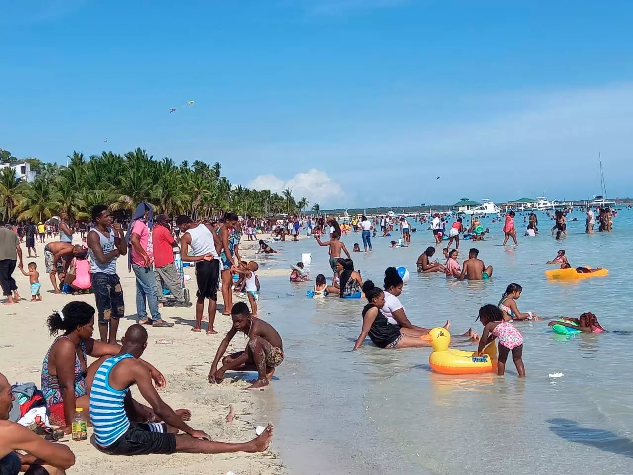 Cientos de personas de todas las edades se concentraron este viernes en el agua salada del Mar Caribe y sobre la fina arena de la playa favorita de los capitaleños.