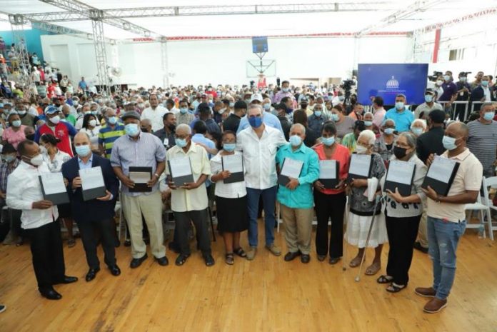República Dominicana.-El presidente de la República, Luis Abinader, encabezó este jueves el acto de entrega de 315 títulos de propiedad a igual número de beneficiarios en Los Mina, Santo Domingo Este.