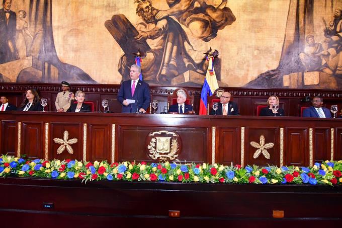 República Dominicana.-El presidente de Colombia, Iván Duque, resaltó este viernes los lazos de amistad y la cooperación entre su país y República Dominicana, al ser recibido en el Congreso Nacional como parte de su visita oficial al país; en su discurso, el gobernante colombiano elogió el manejo de la crisis provocada por la Covid-19 y las medidas para enfrentar la inflación adoptadas en las dos naciones.
