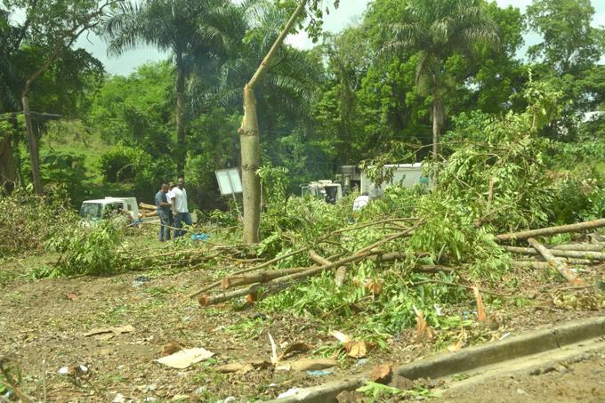 Los árboles fueron cortados en el kilómetro 17 de la autopista Duarte bajo el alegado de que en el lugar se construirá la circunvalación de Palmarejo-Villa Linda-Patoja para resolver el entaponamiento vehicular en la zona.