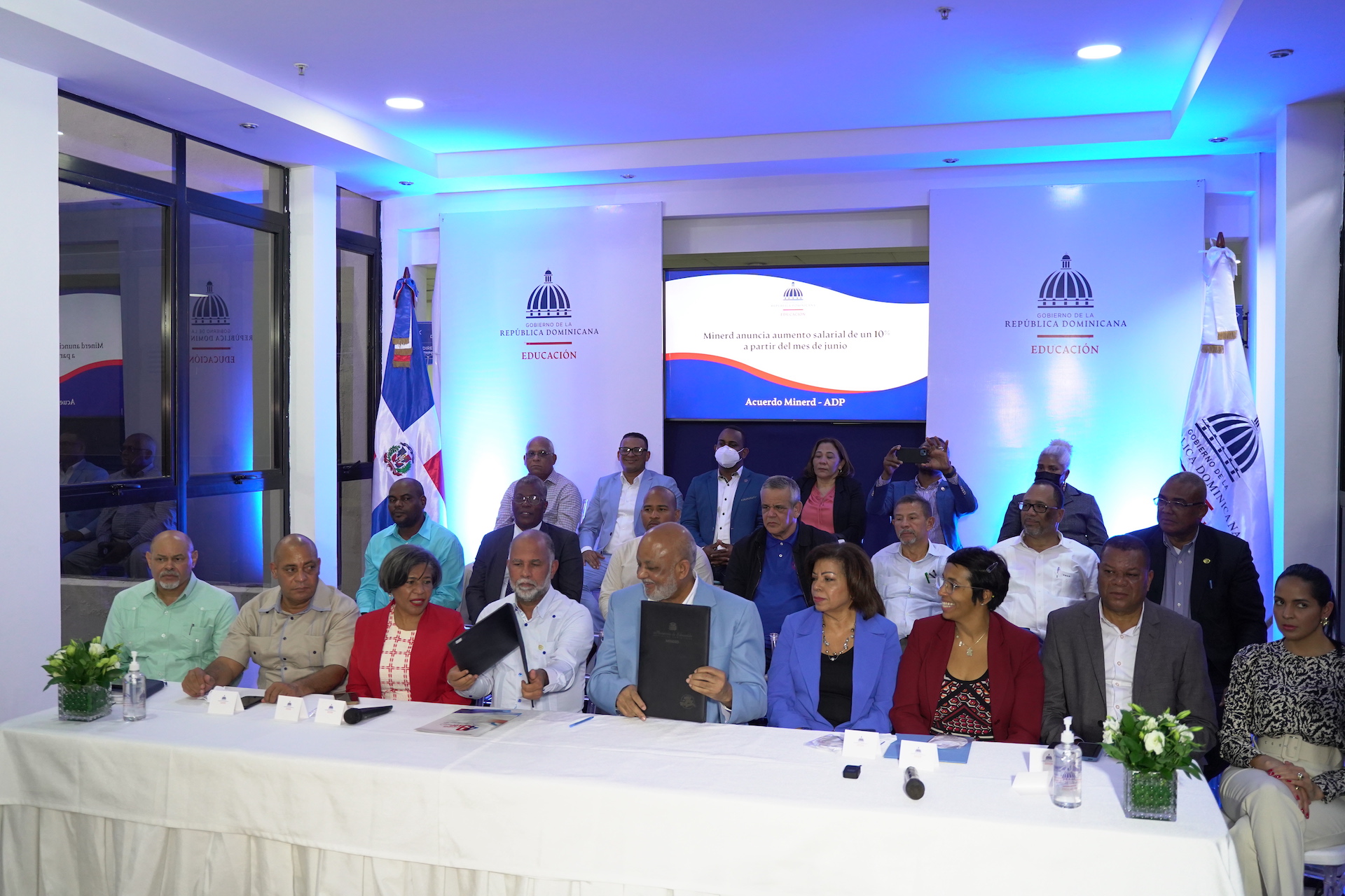 El Ministerio de Educación de la República Dominicana y la Asociación Dominicana de Profesores (ADP) anunciaron este lunes al país su consenso para la aplicación, en el mes de junio, de un aumento salarial del 10% al magisterio nacional, como había propuesto el MINERD.