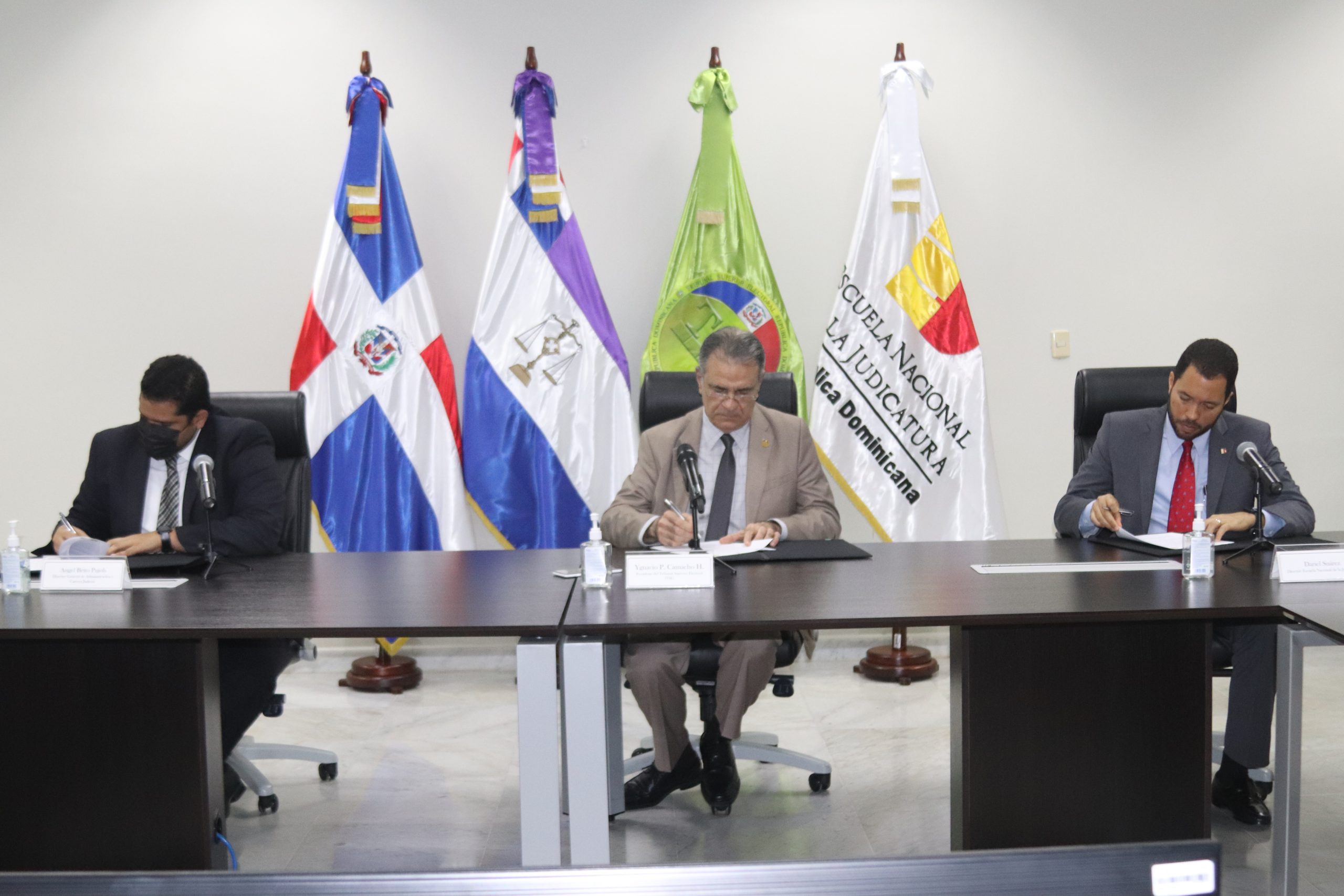 El convenio fue firmado por el magistrado Ygnacio Pascual Camacho, juez presidente del Tribunal Superior Electoral (TSE), Ángel Brito Pujols, director general de Administración y Carrera Judicial del Poder Judicial y Dariel Suárez, director de la Escuela Nacional de la Judicatura.