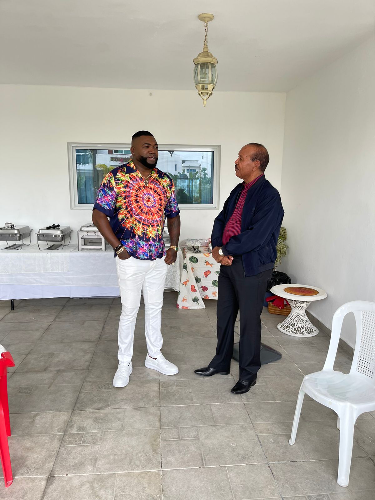 El Big Papi David Ortiz estuvo de visita en la residencia de Fedra Odil Santana, exesposa del también expelotero de las Mayores, Rubén (Boquetón) Mateo en Madre Vieja Sur, de San Cristóbal.
