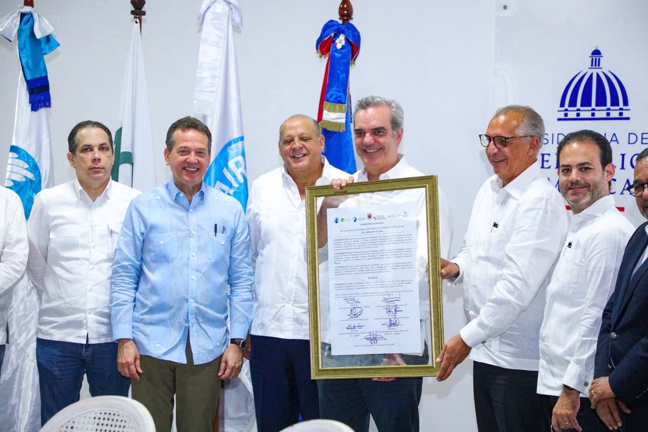 El presidente de la República, Luis Abinader, recibió este fin de semana un reconocimiento de manos de las siete instituciones privadas que integran “Compromiso Santiago” por impulsar a través de un plan de políticas públicas el desarrollo económico de Santiago y la región del Cibao.