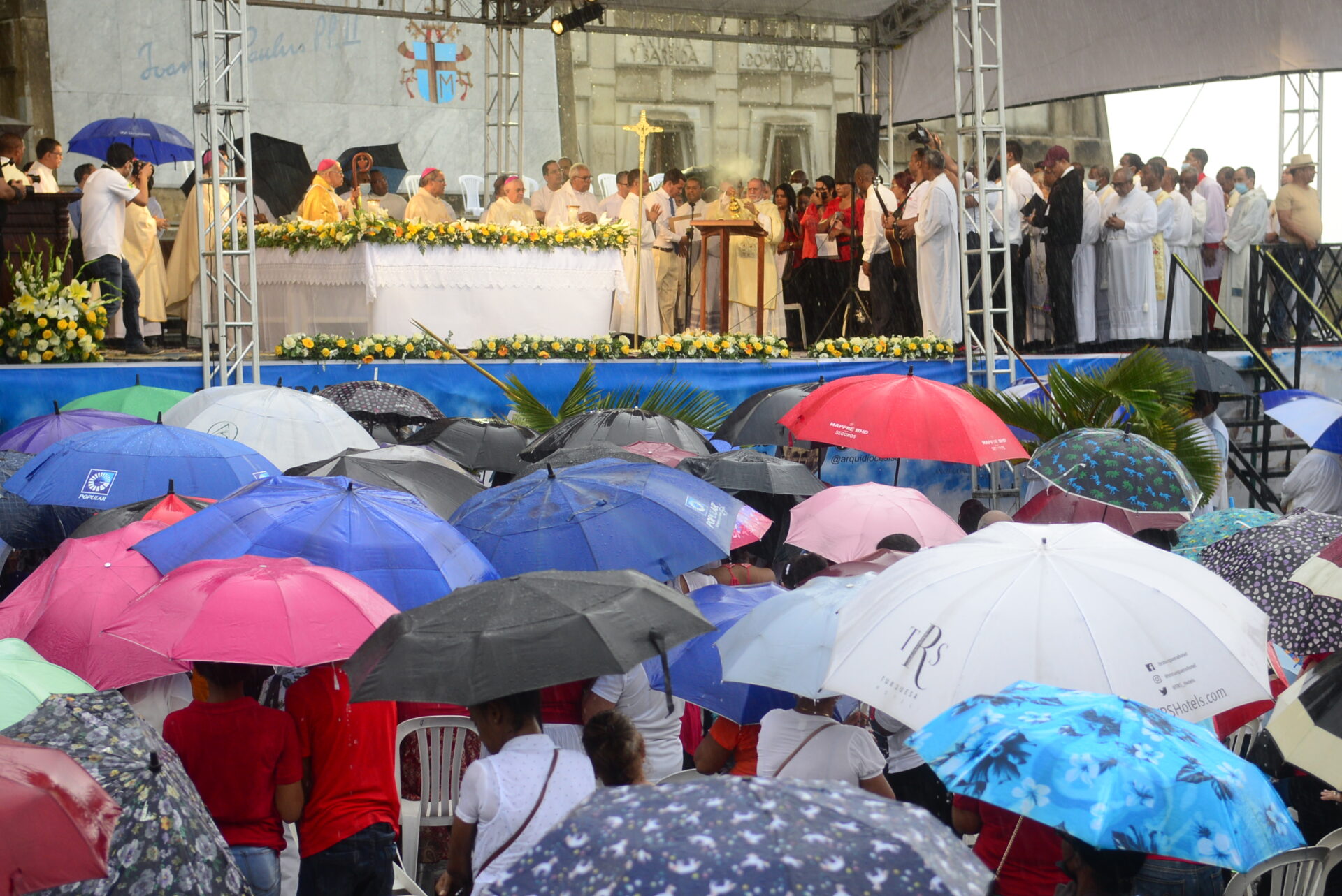 La celebración religiosa, que tuvo lugar en la explanada del Faro a Colón, contó con la participación de una gran cantidad de fieles, que desafiaron las intensas lluvias que se registraron la tarde de este jueves en el Gran Santo Domingo. En el acto, Monseñor Francisco Ozoria expresó que el Corpus Chisti es una conmemoración para demostrar solidaridad hacia el prójimo.