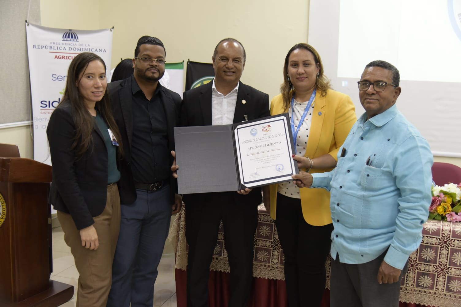 La distinción fue recibida por el viceministro de Producción y Mercadeo del Ministerio de Agricultura, Eulalio Ramírez, quien estuvo acompañado de Santiago Tomás Burgos, titular de la Dirección de Tecnologías de la Información y Comunicaciones de la entidad.
