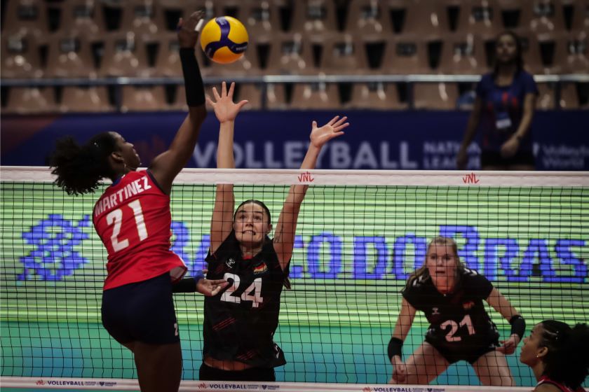 BRASIL.-El sexteto de voleibol femenino de la República Dominicana derrotó este domingo a su similar de Alemania tres sets por uno en la continuación de la Liga de Naciones que se celebrado en Brasil. Los parciales concluyeron 23-25, 25-23, 25-11 27-26.
