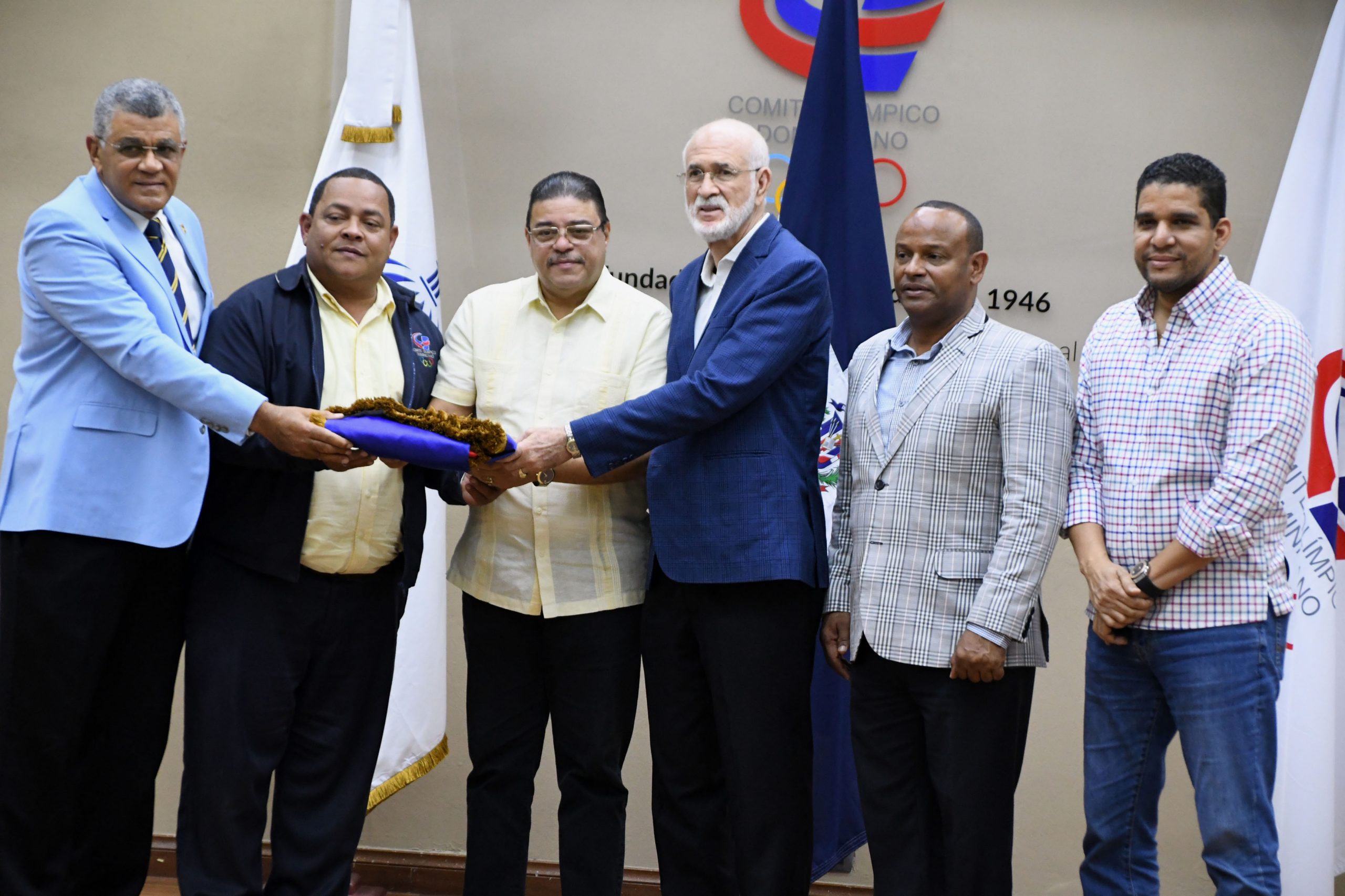 La bandera nacional fue recibida por el presidente del COD, licenciado Antonio Acosta, así como por el jefe de Misión de los Juegos Caribeños, Franklin de la Cruz, además de una representación de los atletas quisqueyanos.