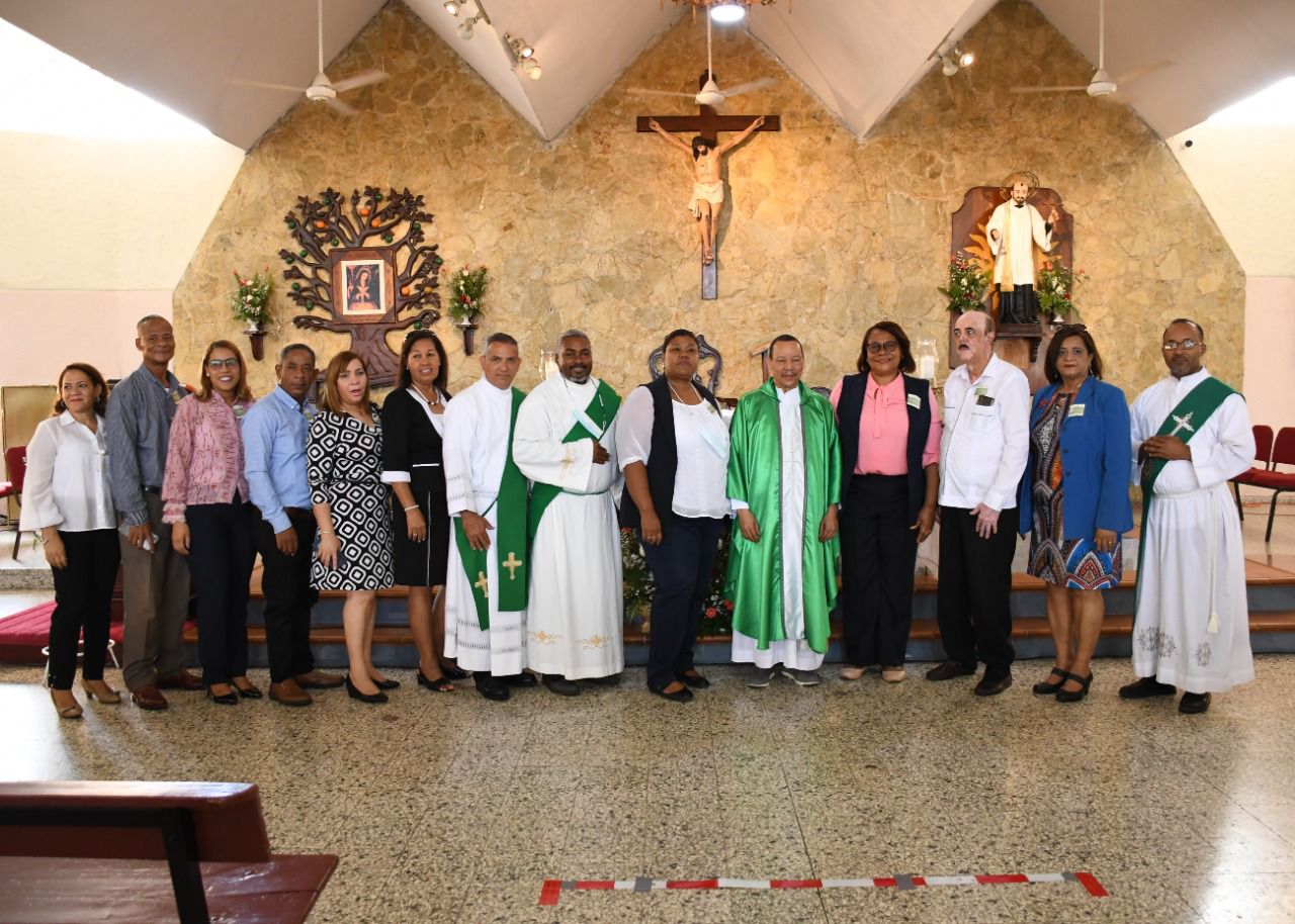 El acto litúrgico, en la Parroquia San Vicente de Paúl, Teodosia Otaño estuvo acompañada de los representantes de la Dirección de Culto del Ministerio de Educación (MINERD), Seferina Resio de Pérez y Aquiles Molina, además la directora del Distrito Educativo 10-03, Eduvigen Rosario.