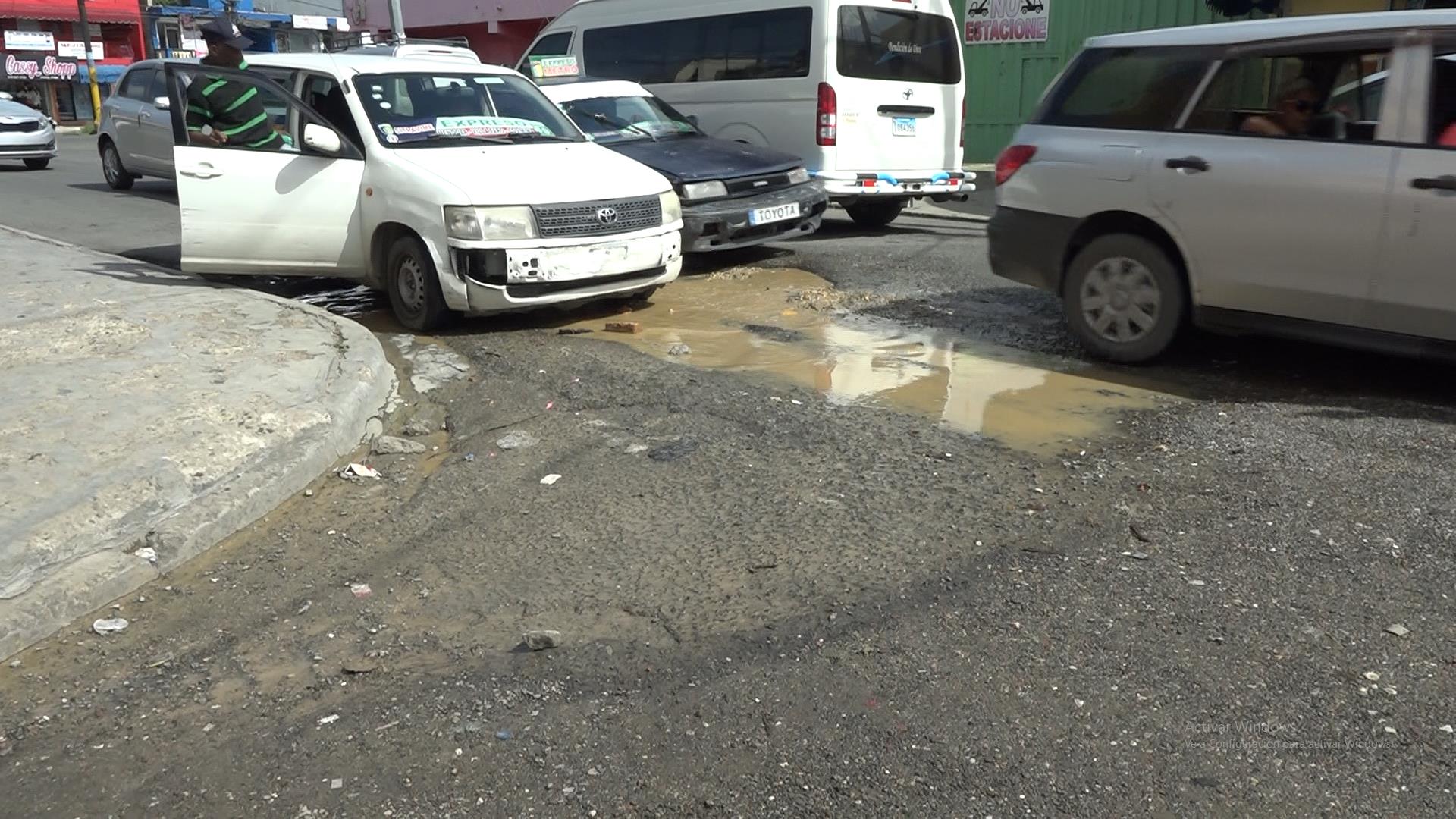 El problema se ubica en la carretera de Mendoza casi esquina San Vicente de Paul, una de las intersecciones más transitadas en Santo Domingo Este. Conductores y residentes en los alrededores explicaron los inconvenientes que genera el pésimo estado en que se encuentra la vía a quienes transitan por el lugar.