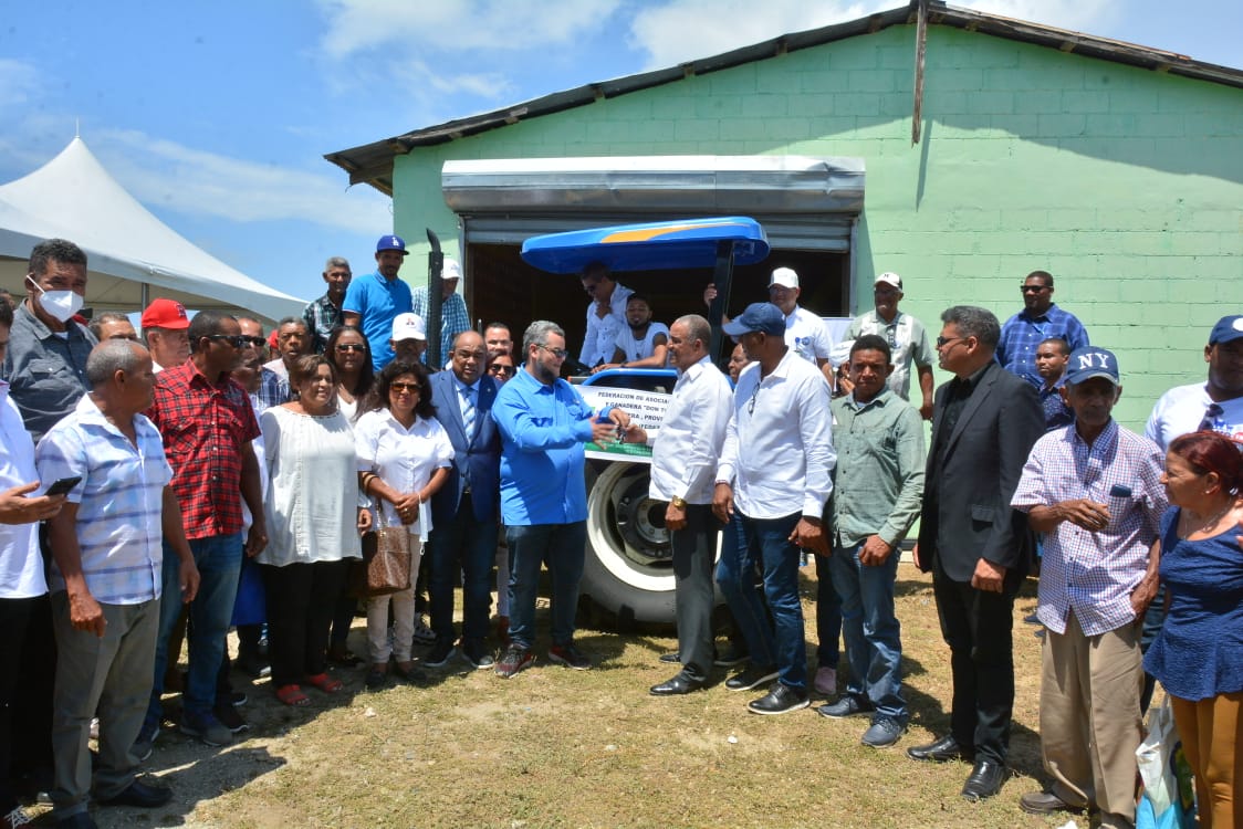 MONTECRISTI.-El director del Fondo Especial para el Desarrollo Agropecuario (FEDA), Hecmilio Galván, entregó un tractor con su rastra como financiamiento para los miembros de la Federación de Asociaciones Agrícolas y Ganaderas ‘’Don Tomas Santana’’ FEDAZCO, de la zona costera de Montecristi, para agilizar la preparación de tierra para la producción agropecuaria, como parte de los esfuerzos del Gobierno para enfrentar la crisis mundial.