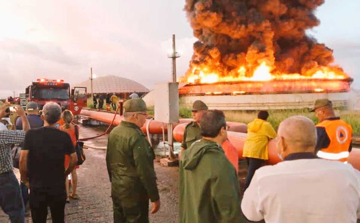El incendio que sigue activo se produjo después de que un rayo impactara en medio de una tormenta en el tanque 52 de almacenamiento de crudo de la Base de Supertanqueros de la ciudad. El tanque de crudo se encontraba al 50 % de su capacidad, lo que equivale a 50.000 metros cúbicos, detalló el director de la División Territorial de Comercialización de Combustibles Matanzas, Rigel Rodríguez Cubells.