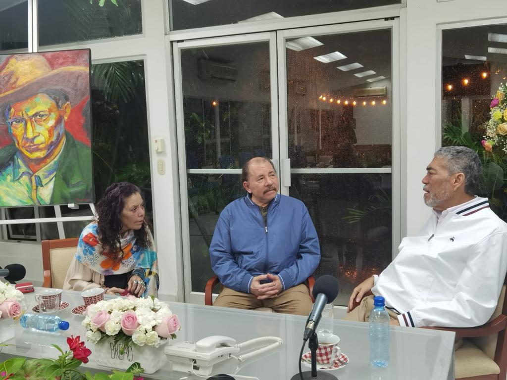 Agencias.-El comandante Daniel Ortega Saavedra, presidente constitucional de la hermana República de Nicaragua y la vicepresidenta Rosario Murillo, sostuvieron un ameno encuentro, el sábado 13, con el secretario general del Movimiento Izquierda Unida, Miguel Mejía, quien desde el miércoles 10 desarrolla una agenda política en la ciudad de Managua.