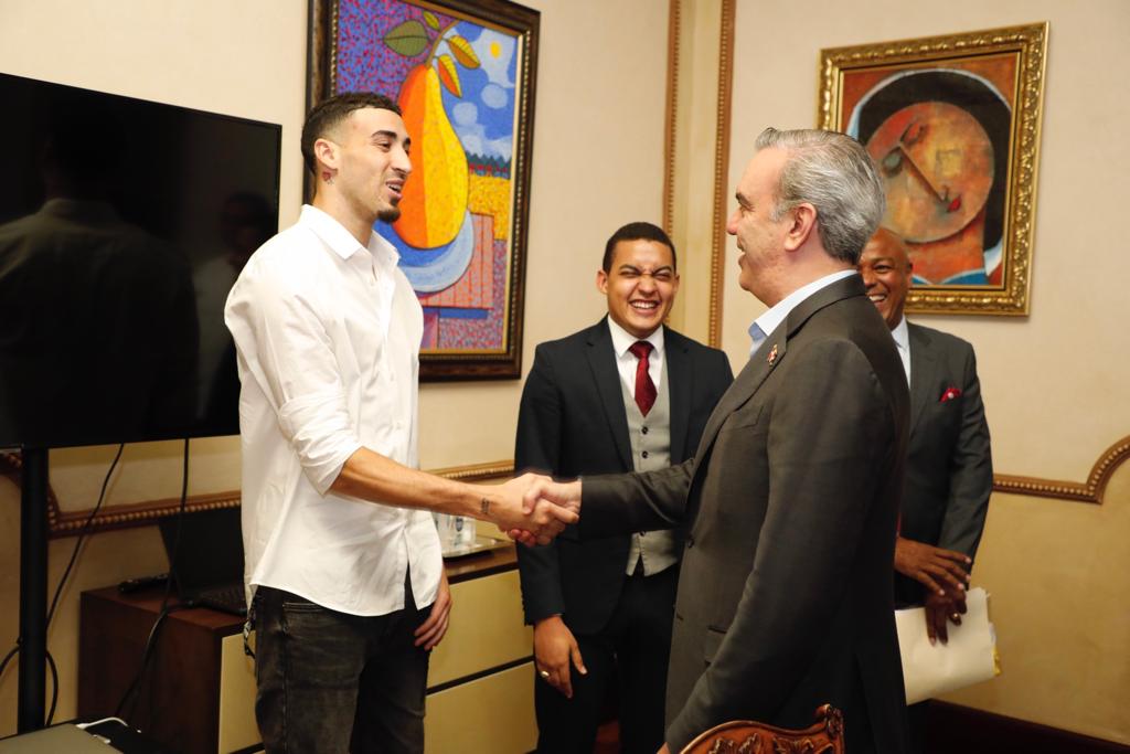 Santo Domingo, RD.- El presidente Luis Abinader recibió este jueves en el Palacio Nacional a Chris Duarte, jugador dominicano de baloncesto profesional que se encuentra en el país para participar, junto a la selección nacional, en el torneo clasificatorio para la Copa Mundial de Baloncesto de 2023.