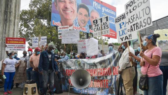 República Dominicana.-La Coalición comunitaria de San Felipe de Villa Mella, en Santo Domingo Norte, volvió a protestar frente al Ministerio de Obras Públicas, exigiendo que continúen los trabajos de asfaltado en las calles de sus barrios.