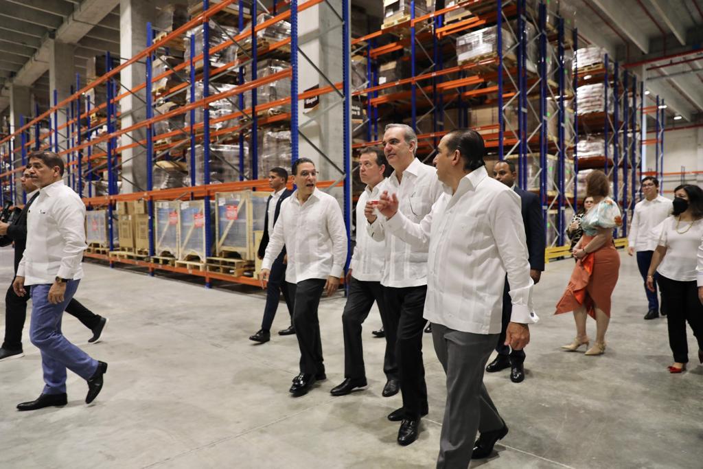 Tras cortar la cinta inaugural del centro, el presidente Luis Abinader fue invitado por los ejecutivos de Industrias Banilejas a recorrer sus instalaciones.
