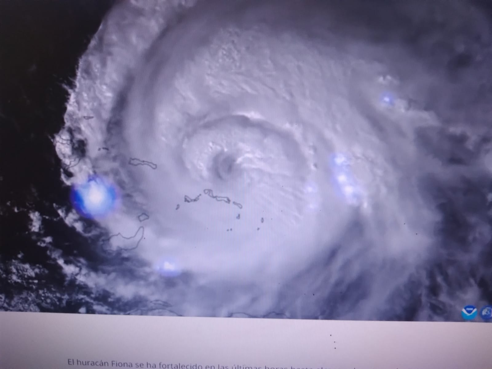 Fiona se mueve hacia el noroeste a 13 km/h, con vientos máximos sostenidos de hasta 210 km/h y ráfagas de hasta 250 km/h.