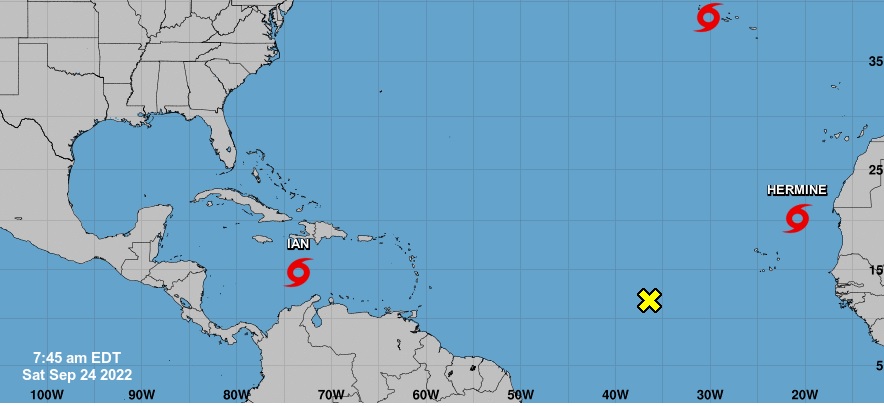El huracán FIONA, se degenera a un post- tropical, localizado a unos 255 km al noreste de HALIFAX (NUEVA ESCOCIA), con vientos máximos sostenidos de 150 kph y desplazándose hacia norte a una velocidad de 43 kph. Mientras que la tormenta tropical Hermine, se ubica a unos 575 km al noreste de Cabo Verde, con viento máximos sostenidos de 65 km/h y se mueve hacia el este a unos 17 km/h.