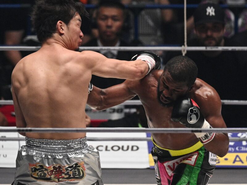 Pero Mayweather, uno de los mejores boxeadores de todos los tiempos y el atleta de deportes de combate con mayores ganancias de todos los tiempos, regresó con sus propios golpes duros. Aterrizó con fuerza en el cuerpo justo antes del final y luego preparó a Asakura para la gran derecha en la campana del segundo asalto, que finalmente terminó la pelea.