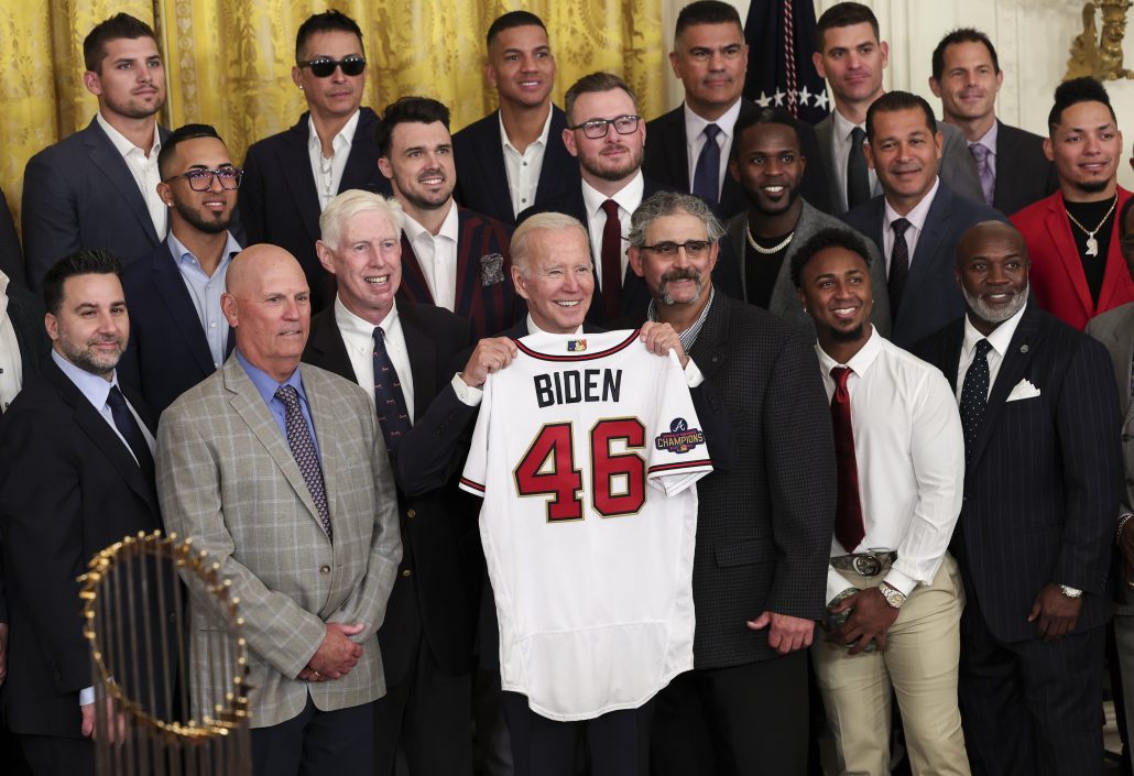 WASHINGTON – El presidente Joe Biden recibió el lunes en la Casa Blanca a los Bravos de Atlanta, actuales campeones de la Serie Mundial del Béisbol de las Grandes Ligas.