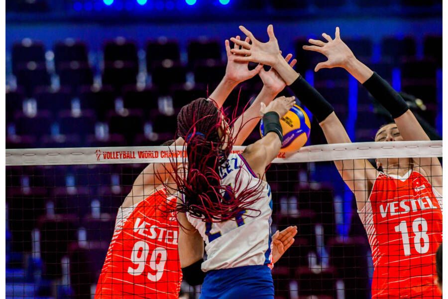 Brayelin logró un potente remate para poner el juego 14-13 arriba Turquía y un roce de bola con un ataque de Ebrar, le dio el punto 15 a las ganadoras.