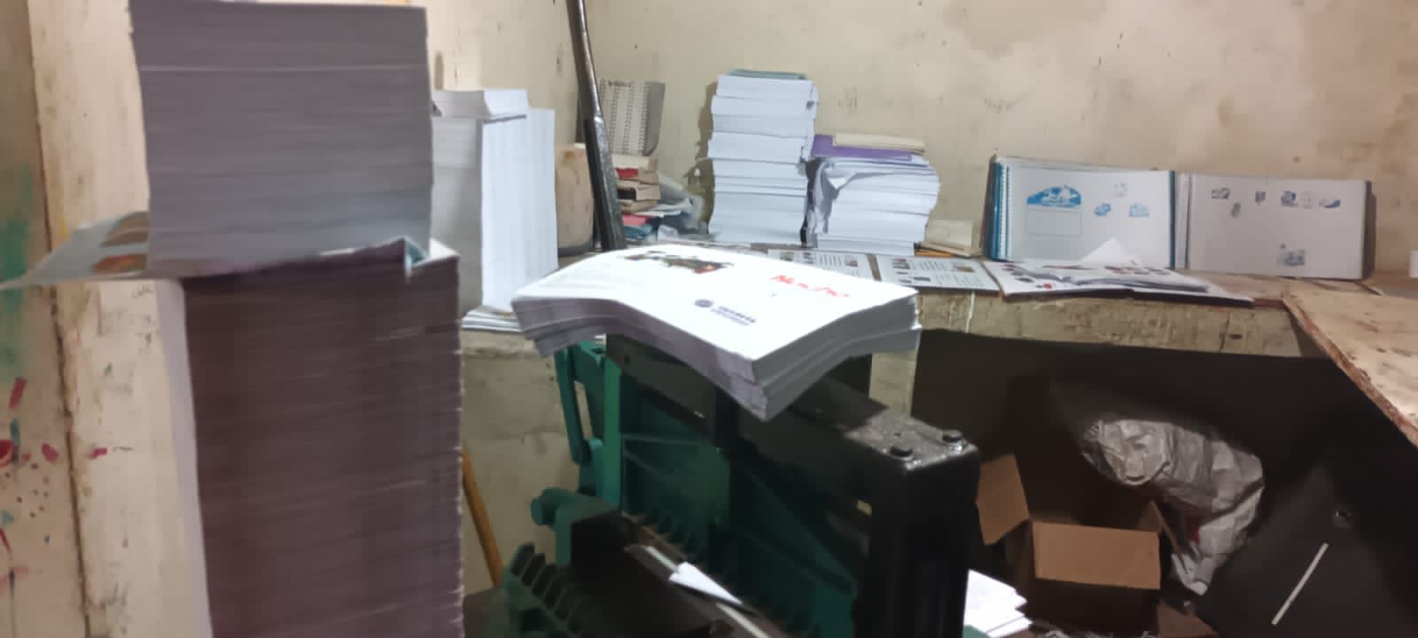 Le ocuparon tres resmas de cartón para imprimir portadas, 30 paquetes de hojas impresas con imágenes del Nacho, 100 ejemplares impresos en el lugar, además de equipos y materiales para impresión y empastado.