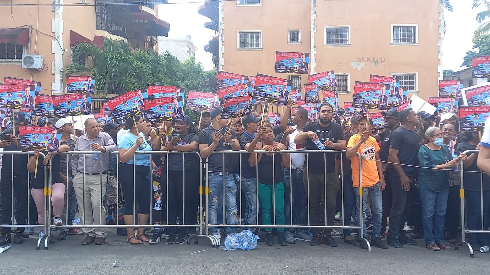 Seguidores del presidente Luis Abinader y adeptos a una eventual repostulación recibieron al mandatario en las afueras del Club Los Cachorros, en Cristo Rey, gritando consignas, como "no mires atrás" y mostrando bien elaborados carteles pidiendo 4 años más.