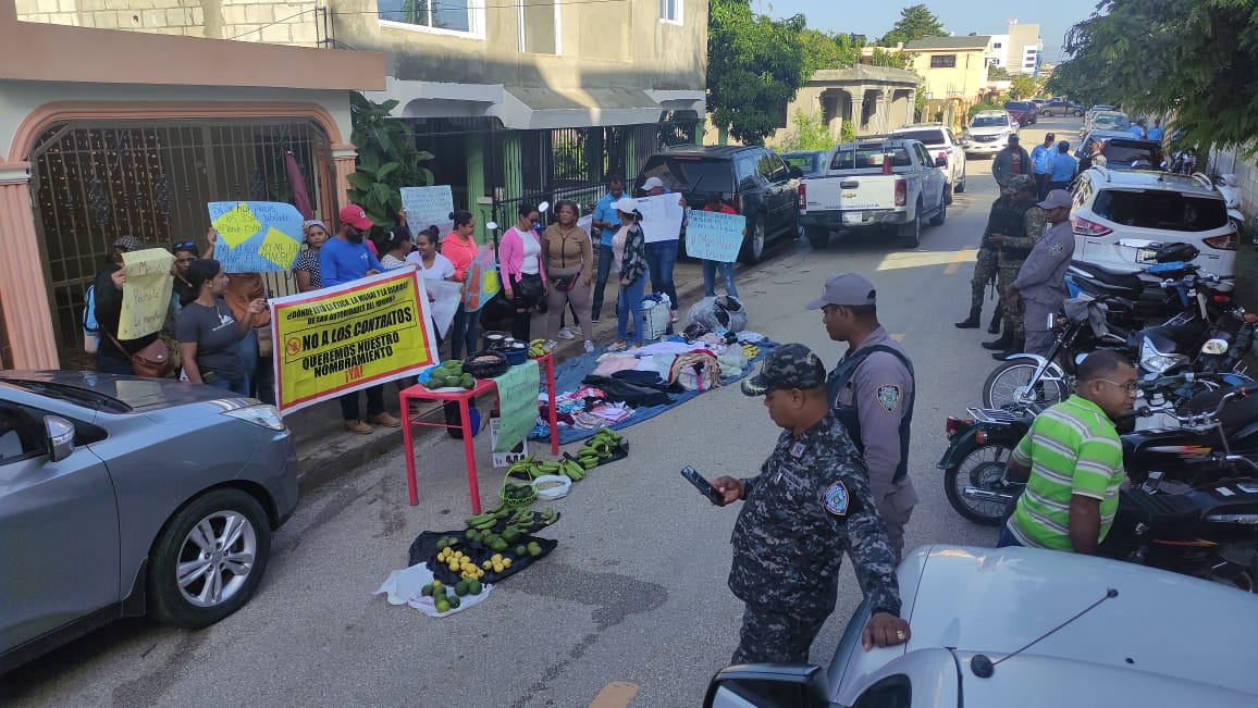 Maestros que aprobaron el Concurso de Oposición Docente del 2020 montaron este jueves un “mercado de productos” frente a la Regional de Educación 02 San Juan/Elías Piña, en demanda de sus nombramientos.