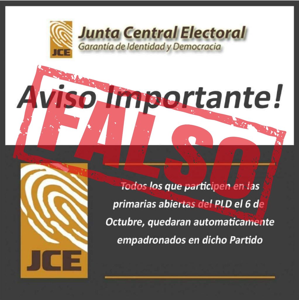 “Informamos a toda la ciudadanía, tal como hicimos en el año 2019, que esta información es falsa y que la misma no fue emitida por la JCE”, postearon.
