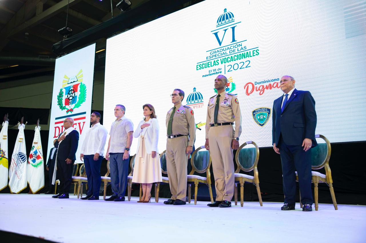 En el acto de graduación que se llevó a cabo en el Pabellón de Voleibol del Estadio Olímpico Juan Pablo Duarte, estuvieron presentes, además, funcionarios del gobierno, alcaldes, comunitarios y legisladores.